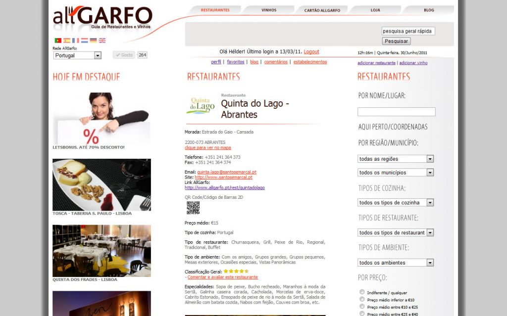 Guia de Restaurantes e Vinhos Portugueses. O projecto evoluiu e expadiu-se internacionalmente, com a replicação do software para todos os países de língua Portuguesa.