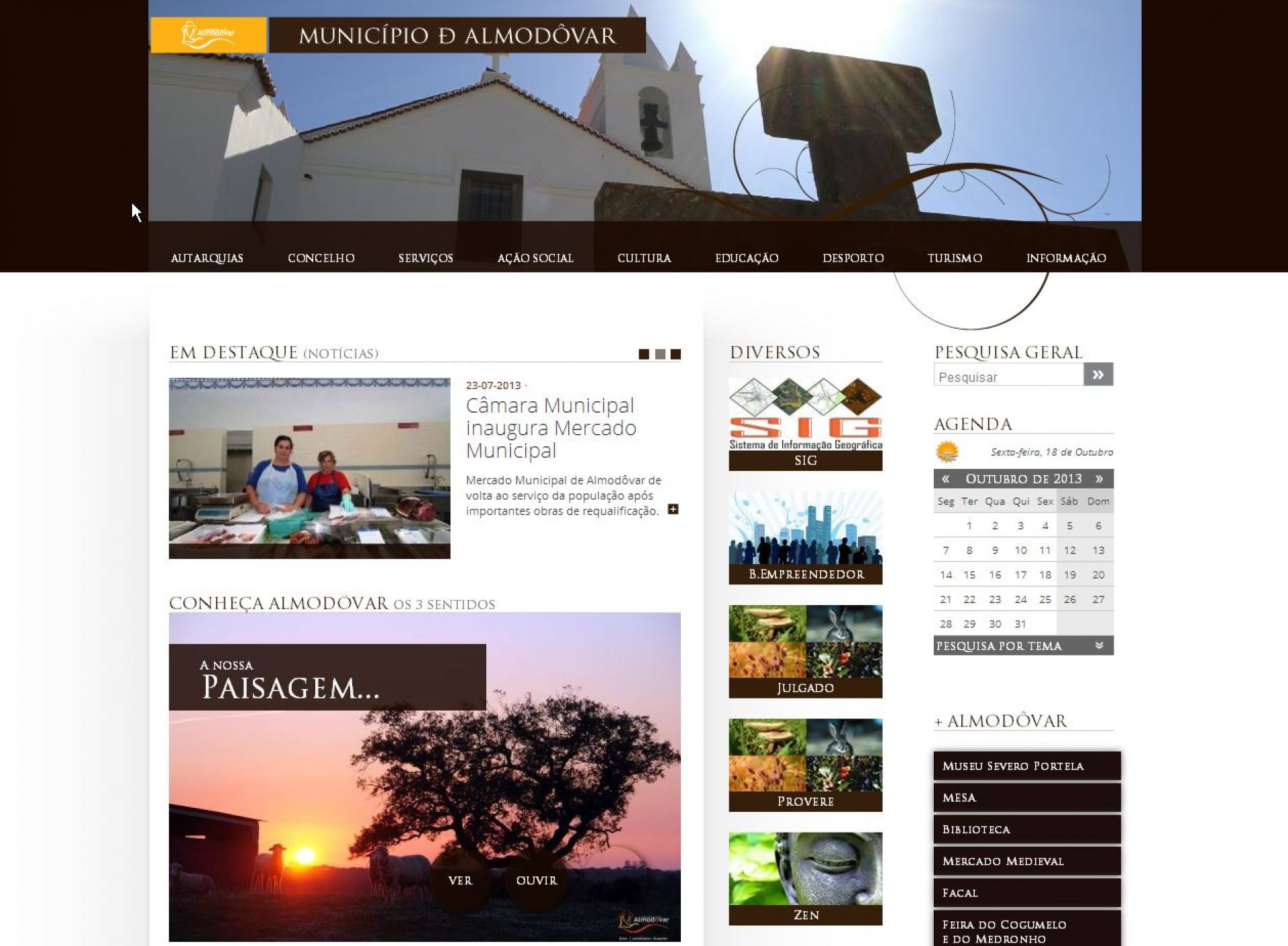 Projecto desenvolvido para o novo site da Câmara de Almodôvar, Alentejo.