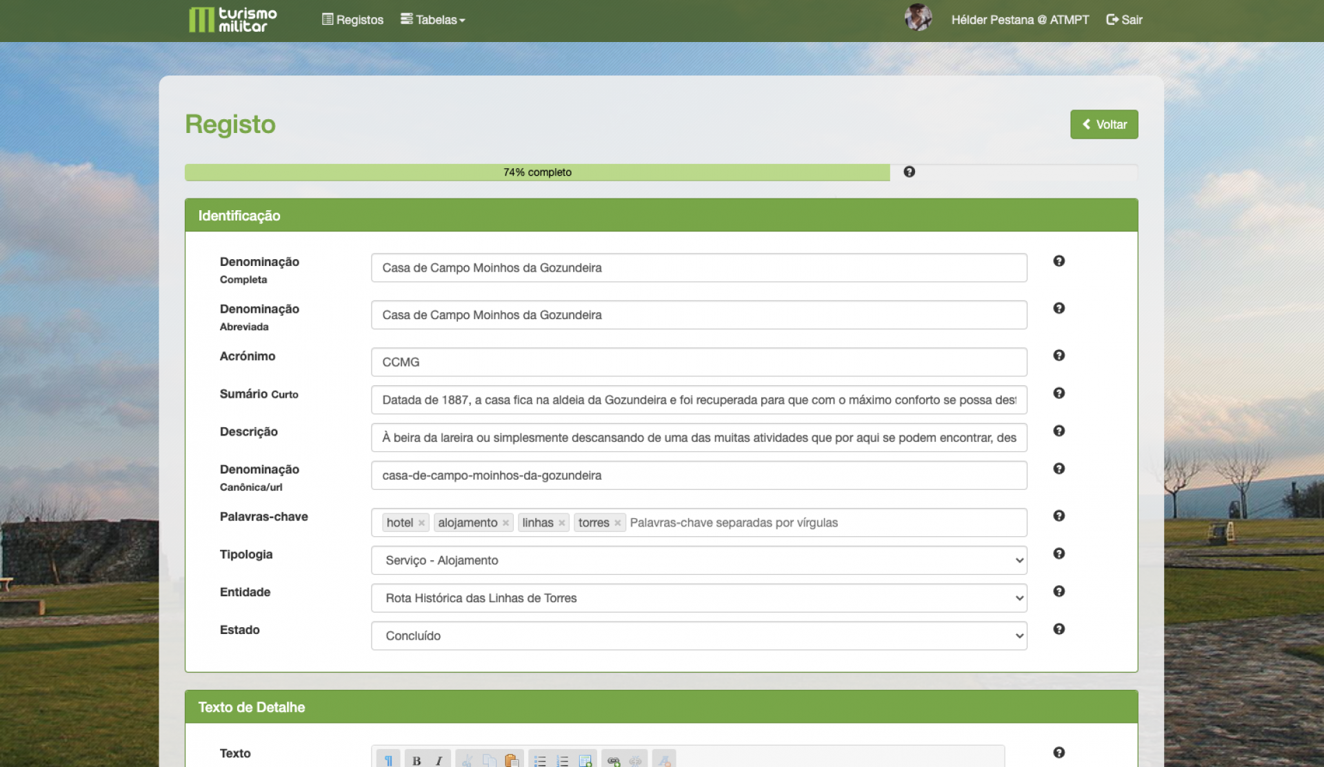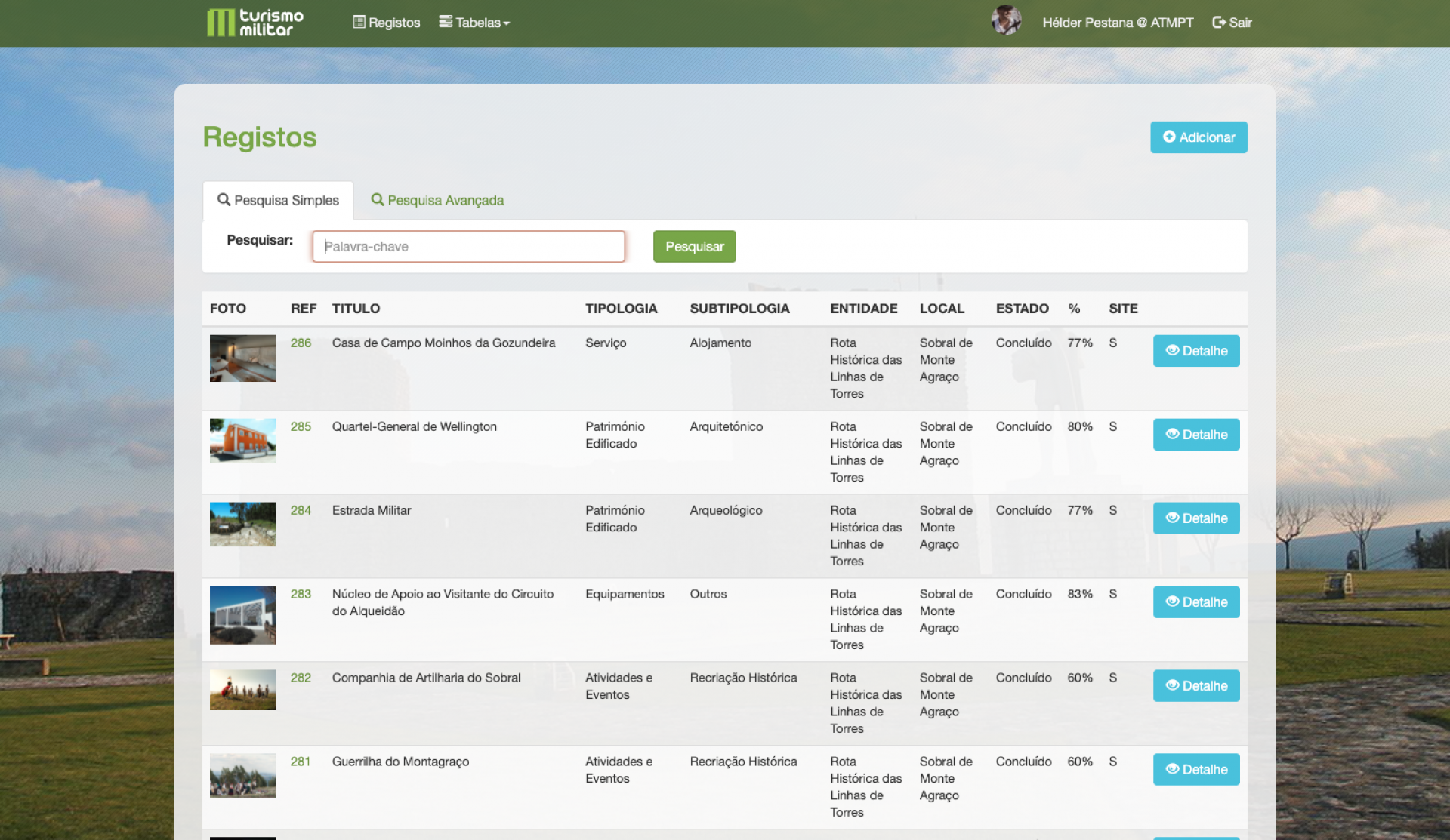 Desenvolvimento de software para intranet / arquivo de gestão de recursos turísticos de índole militar
