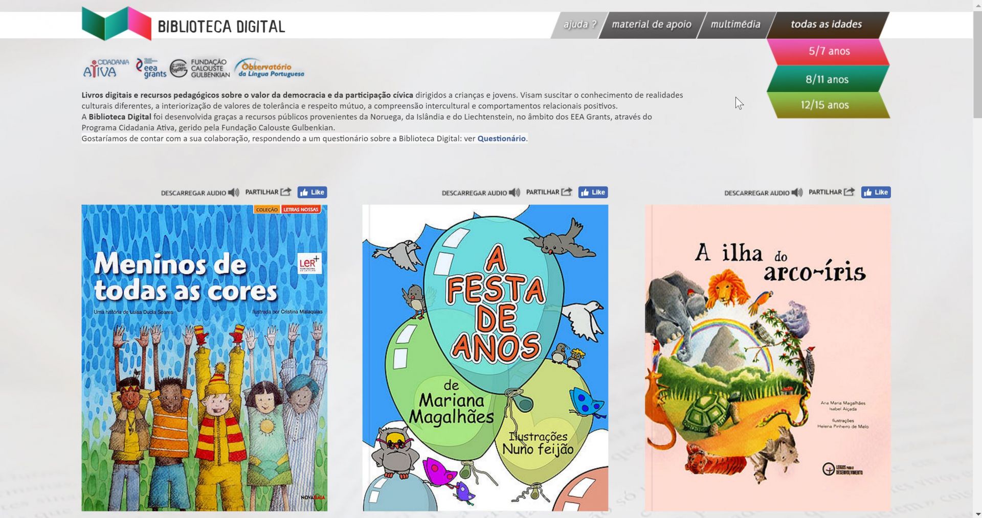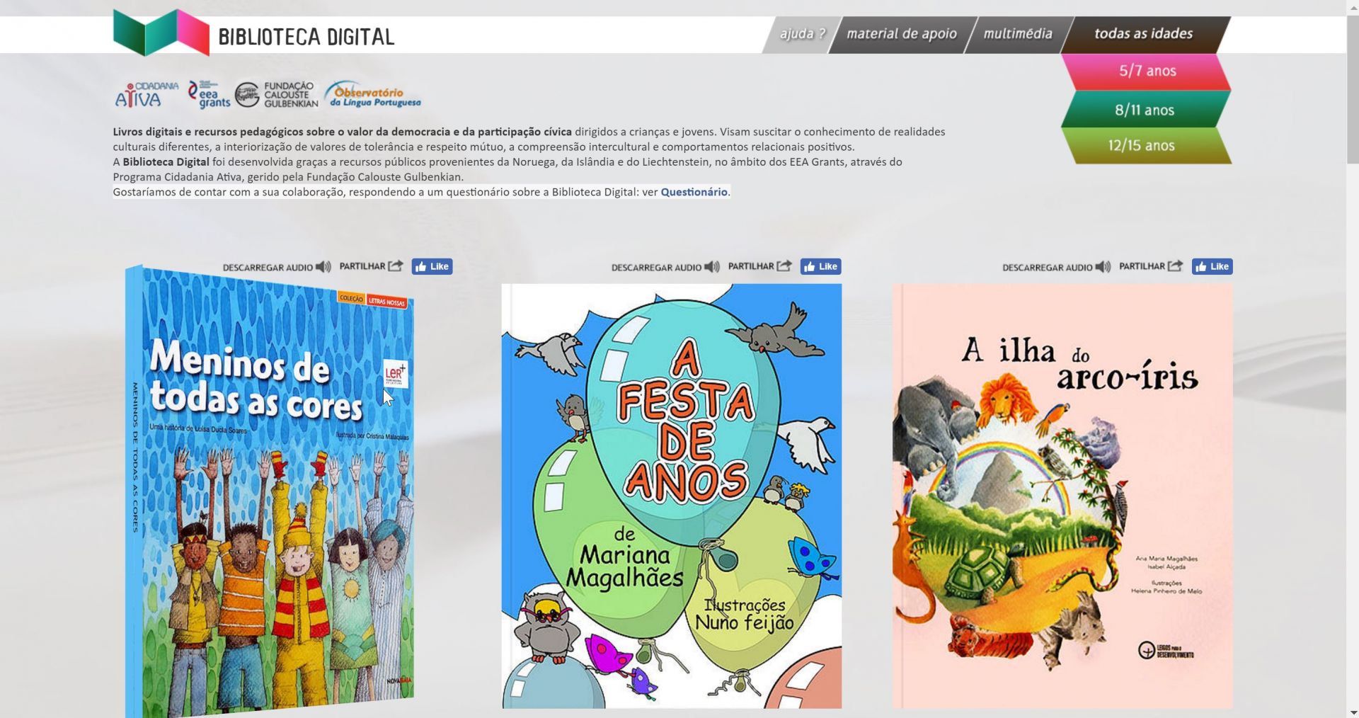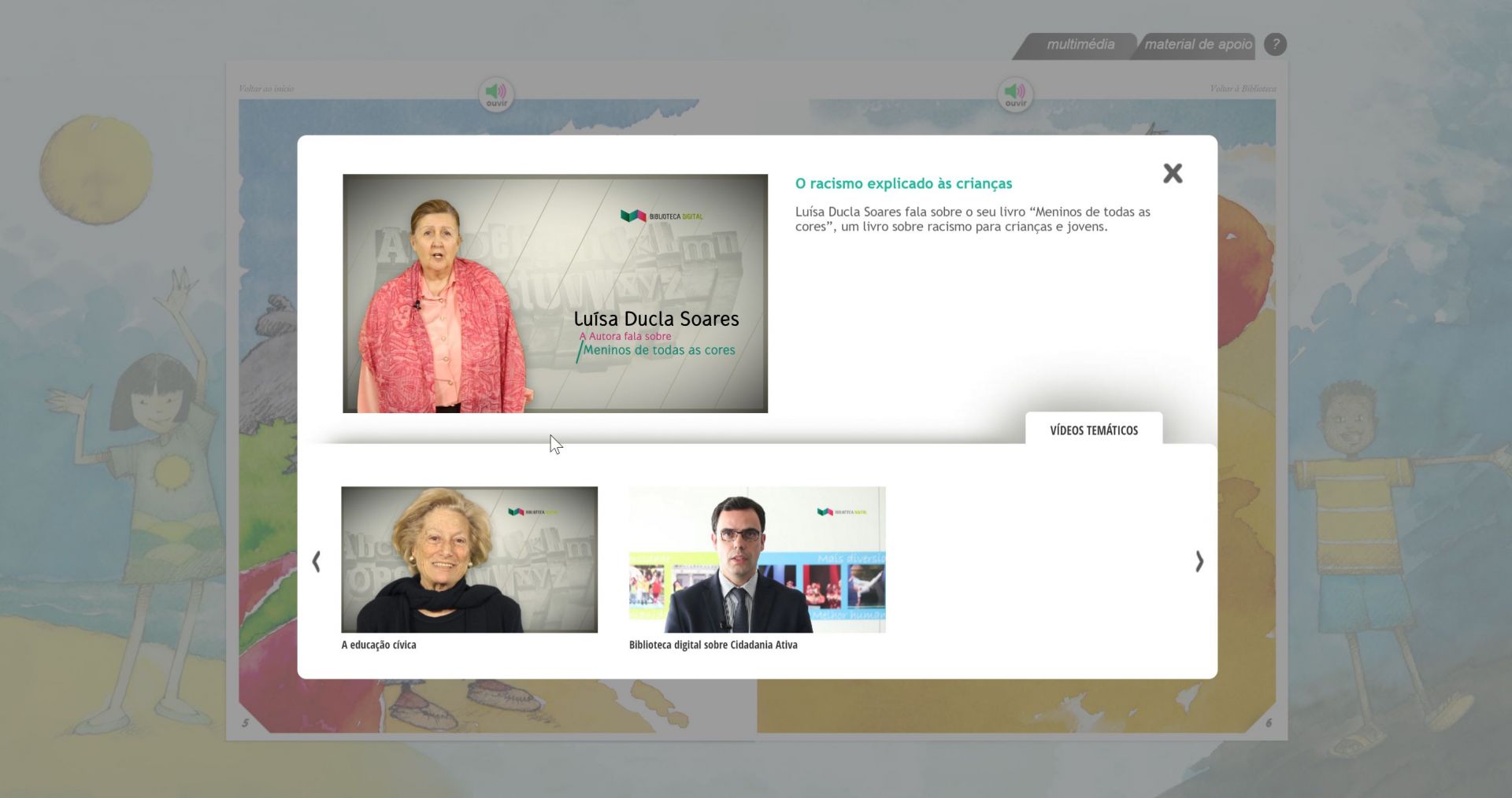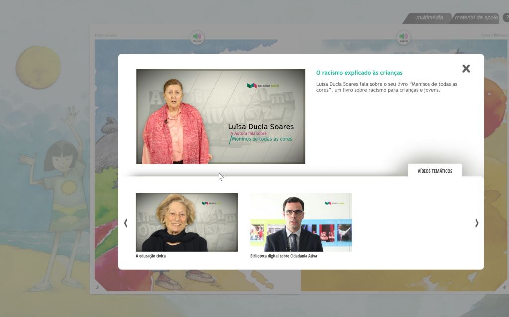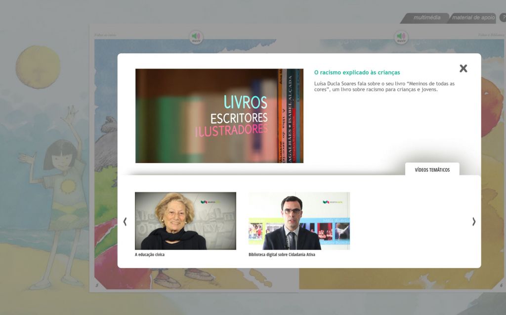 Livros digitais e recursos pedagógicos sobre o valor da democracia e da participação cívica dirigidos a crianças e jovens. Visam suscitar o conhecimento de realidades culturais diferentes, a interiorização de valores de tolerância e respeito mútuo, a compreensão intercultural e comportamentos relacionais positivos.