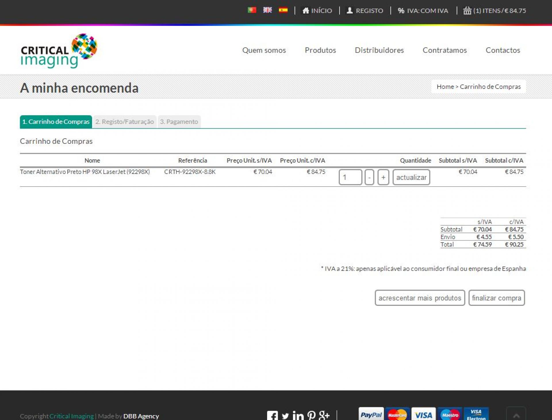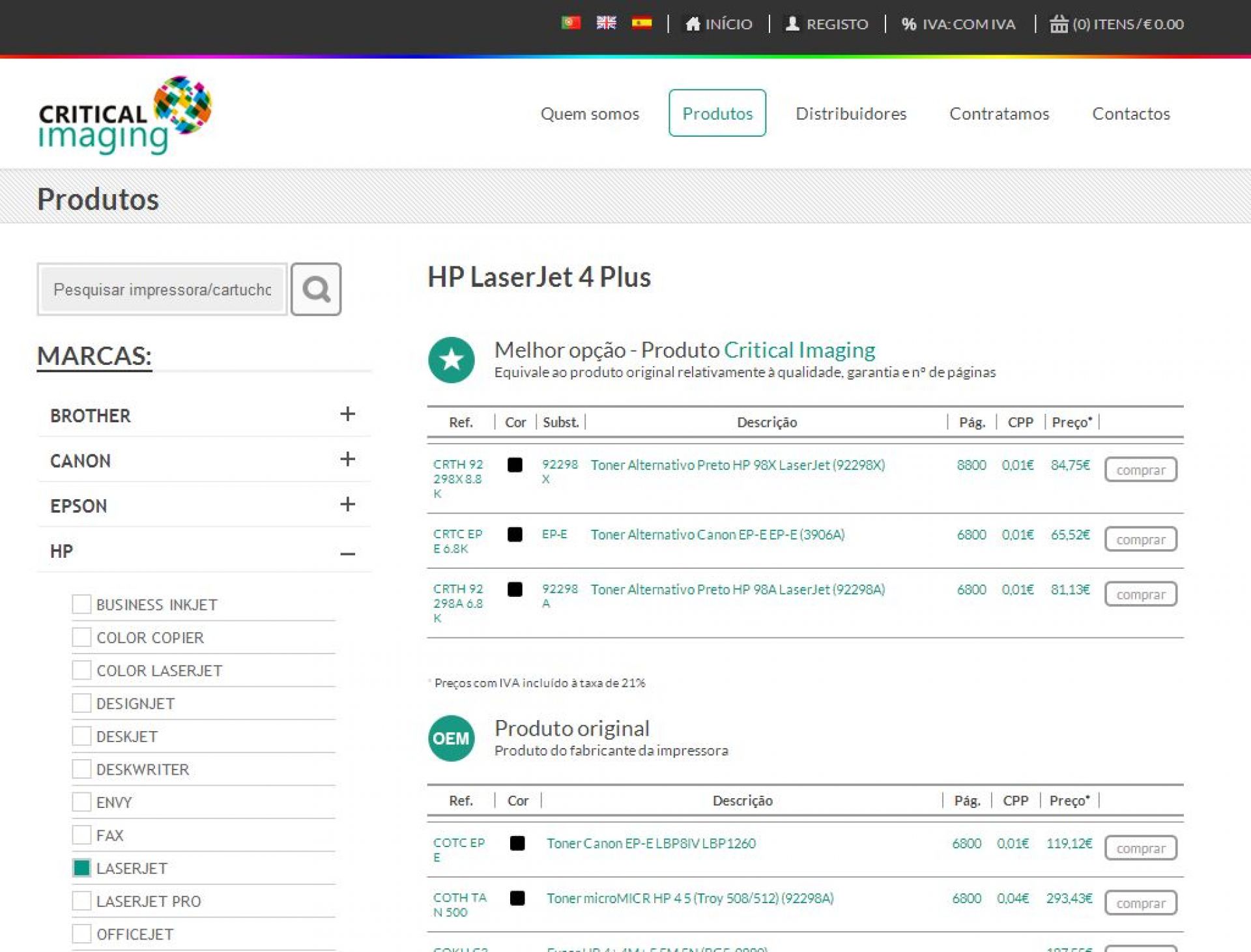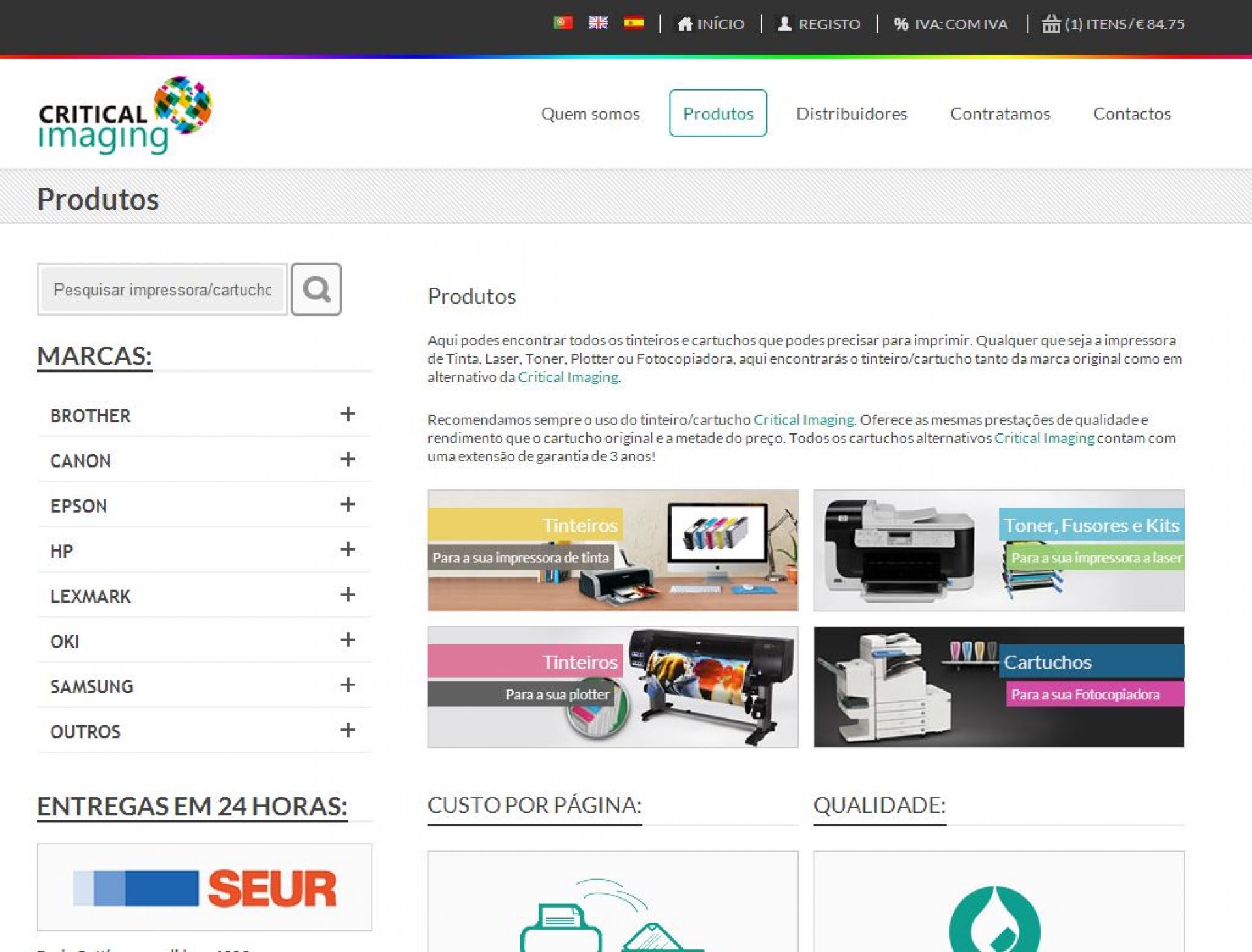 Desenvolvimento do website para a empresa espanhola Critical Imaging. Desde 2006 que os fundadores da Critical Imaging têm experiência internacional na indústria dos cartuchos reciclados. Durante 7 anos temos vindo a trabalhar com os melhores fabricantes mundiais de componentes e maquinaria para a reciclagem de cartuchos, inclusivamente alguns também fabricam componentes para os cartuchos das marcas originais.
