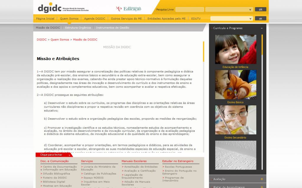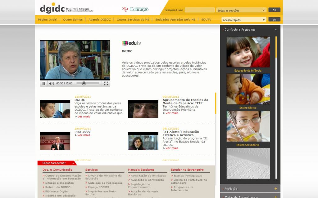 Desenvolvimento do portal da Direcção Geral de Inovação e de Desenvolvimento Currícular, e de cerca de 20 subsites.