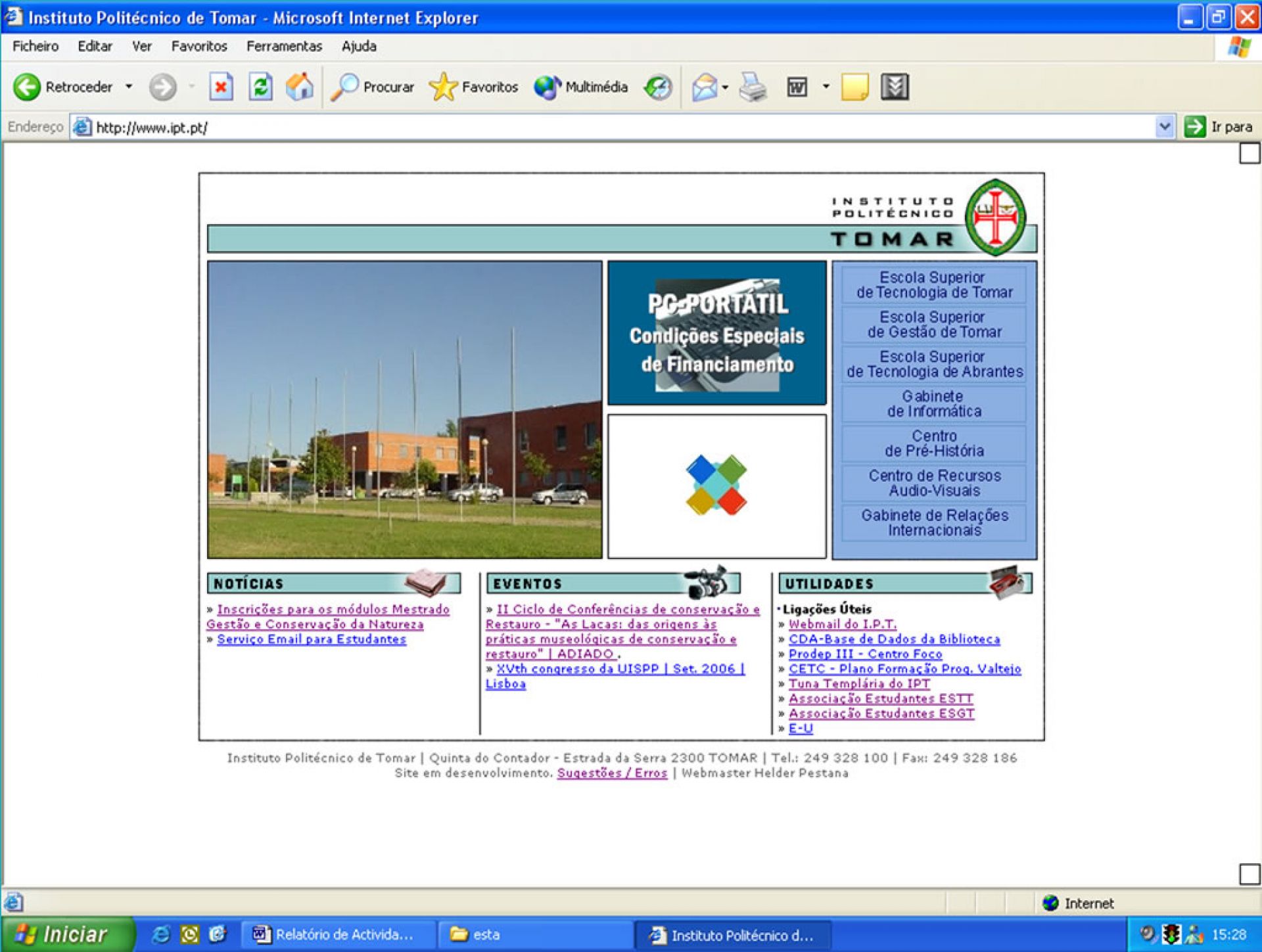 Portal oficial do Instituto Politécnico de Tomar. O lançamento do portal marcou uma nova era em termos web para o IPT.