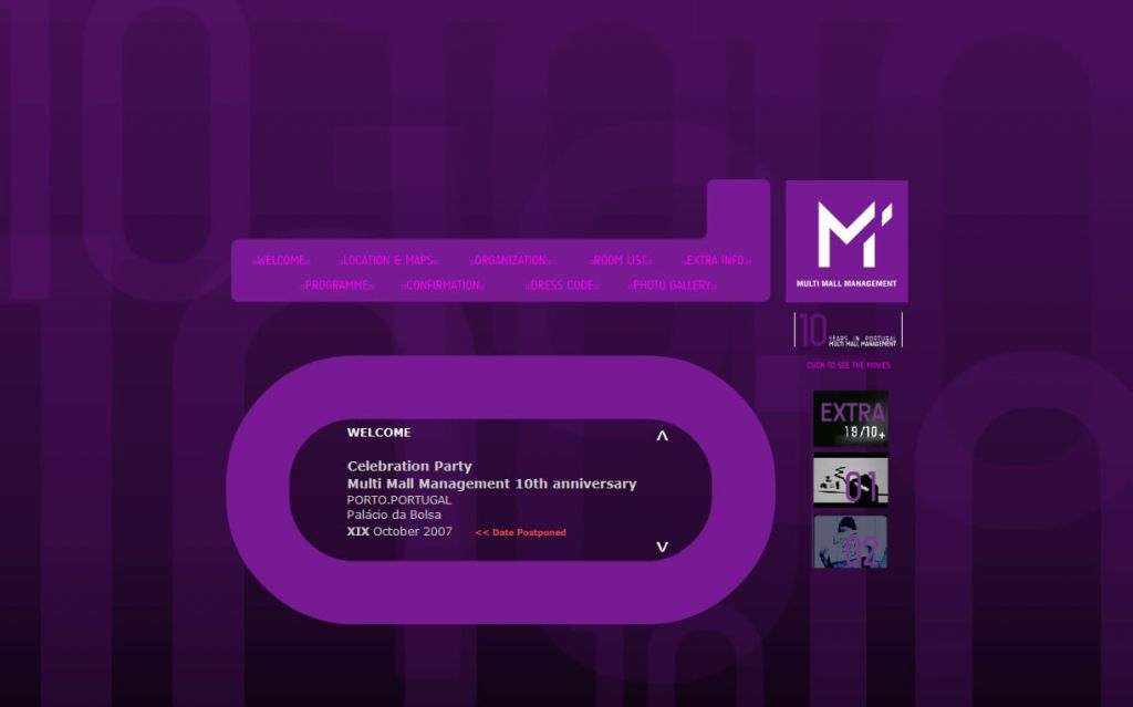 Multi Mall Management Celebration Party Site do evento do aniversário da conceituada empresa Tipo: web/site/portal URL: Cliente: Multi Mall Management Autoria: Hélder Pestana Tecnologia: flash, html