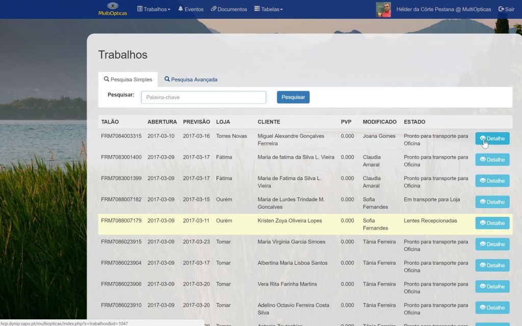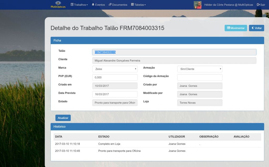 Multiópticas - Intranet Intranet das lojas Multiópticas, para gestão e acompanhamento de encomendas / processamento em fábrica Tipo: web/site/portal URL: Cliente: Multiópticas Autoria: Hélder Pestana Tecnologia: html5, css3, javascript, jquery, php, mysql, webservice