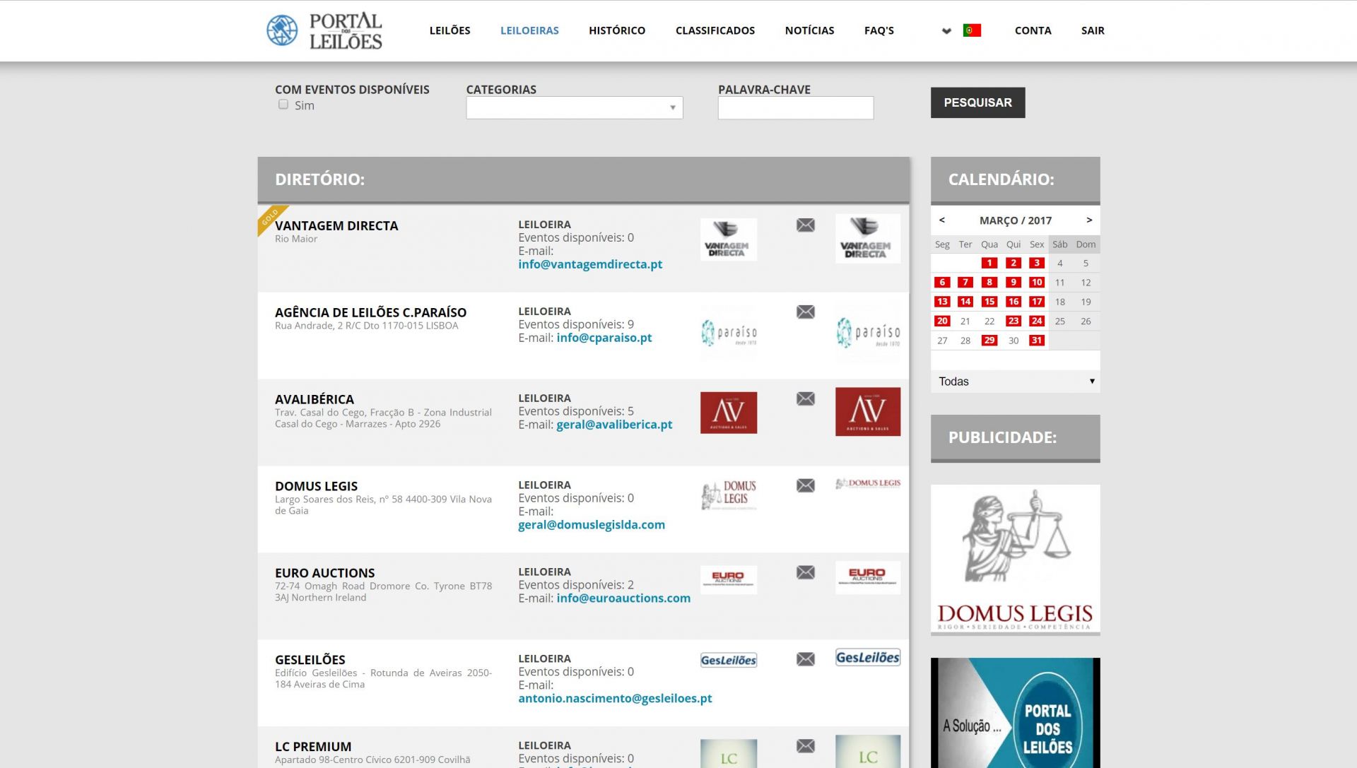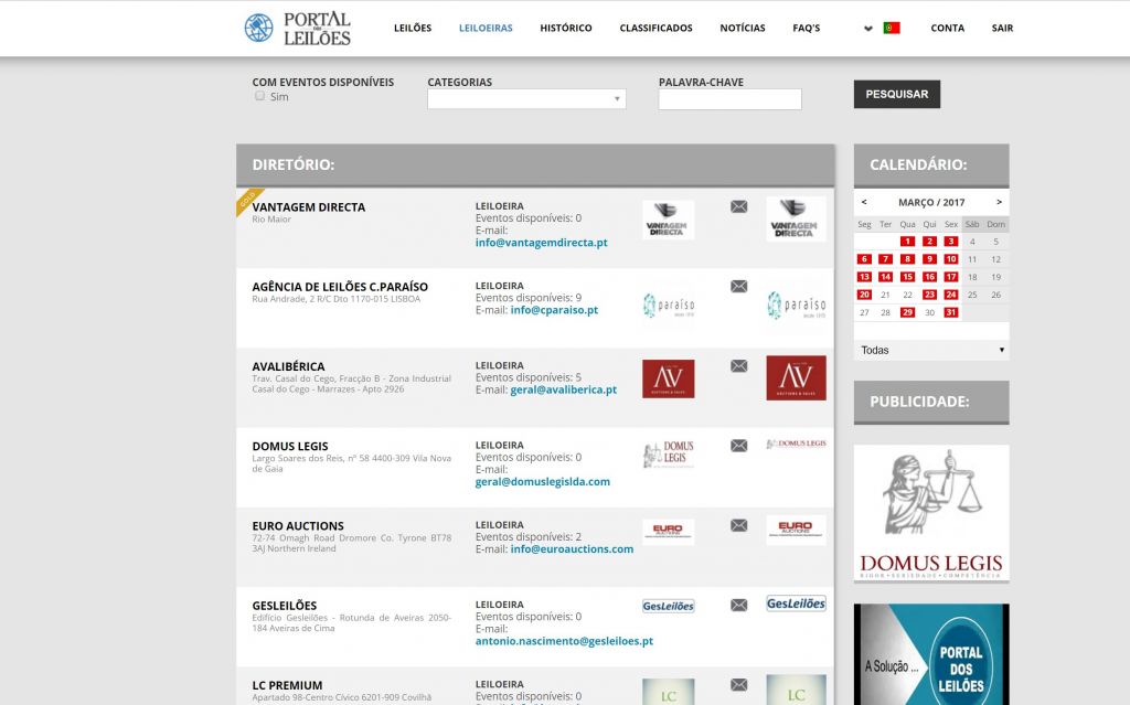 Plataforma, única em Portugal, onde estarão presentes todos os eventos leiloeiros a decorrer, em tempo real, e com actualização permanente de agenda.