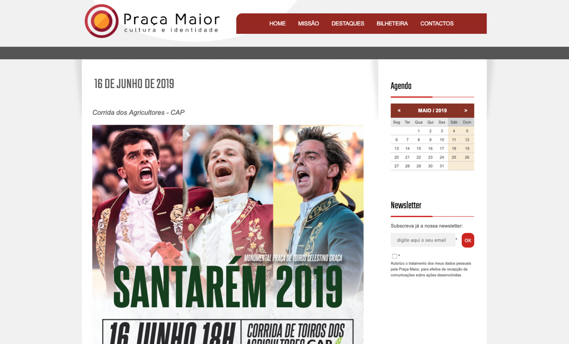 Desenvolvimento de website para a Associação Praça Maior, em Santarém, para promoção da maior praça de touros em Portugal.