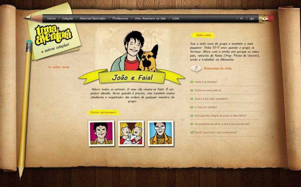 Site de promoção da coleção de duas prestigiadas autoras portuguesas, Ana Maria Magalhães e Isabel Alçada, e ilustrada por Arlindo Fagundes. Destinada a um público juvenil, é constituída já por 53 aventuras vividas nos mais diversos recantos de Portugal e do mundo.