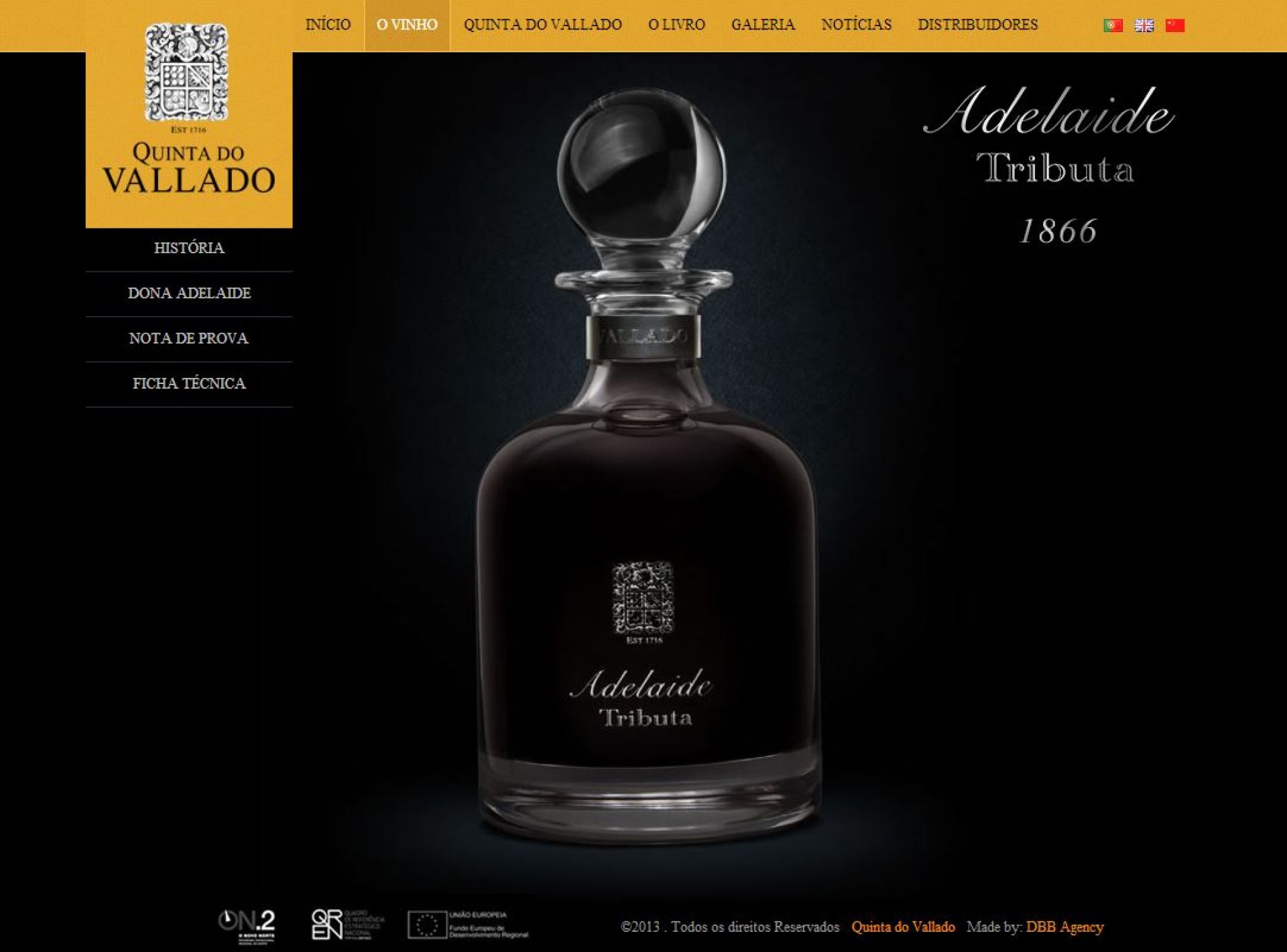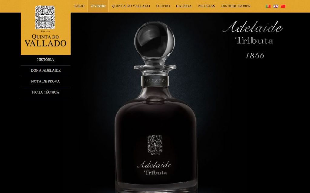 Desenvolvimento do website para o vinho Adelaide Tributa, da Quinta do Vallado. Trata-se de um vinho raríssimo, produzido no ano de 1866, ainda em vida de Dona Antónia, a partir de videiras pré-filoxéricas, cujas uvas foram pisadas a pé.