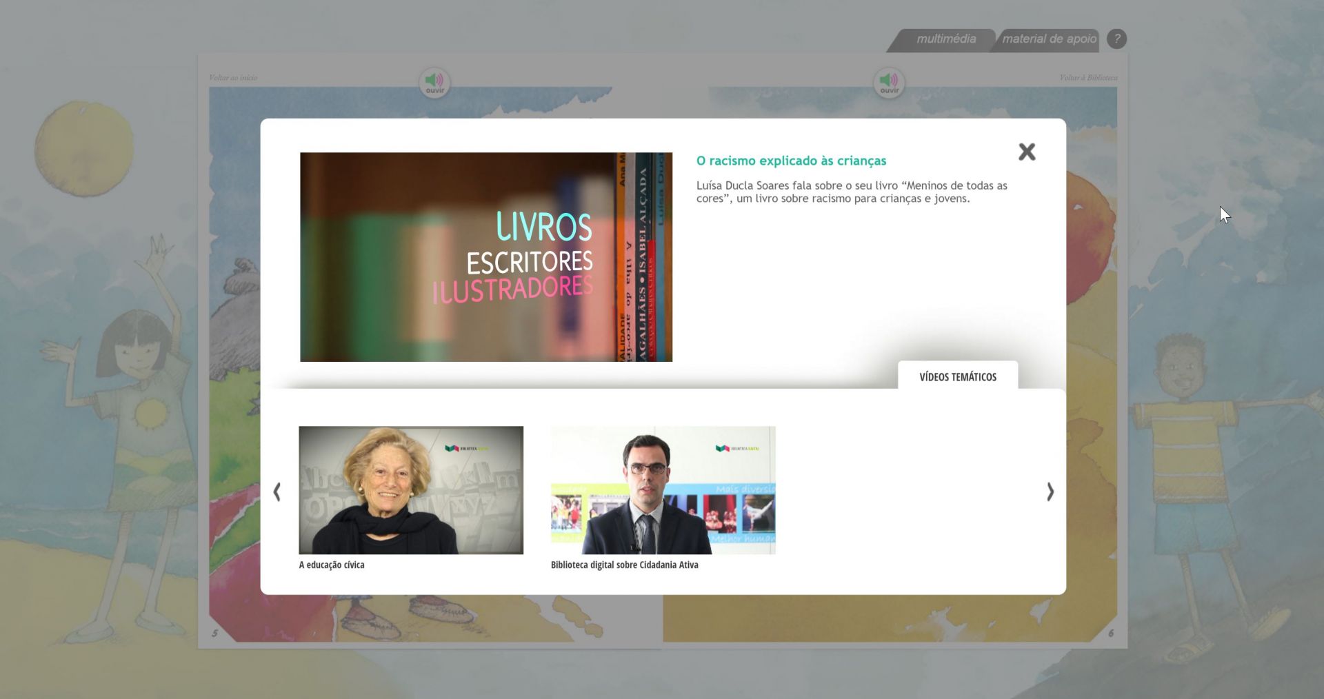 Livros digitais e recursos pedagógicos sobre o valor da democracia e da participação cívica dirigidos a crianças e jovens. Visam suscitar o conhecimento de realidades culturais diferentes, a interiorização de valores de tolerância e respeito mútuo, a compreensão intercultural e comportamentos relacionais positivos.