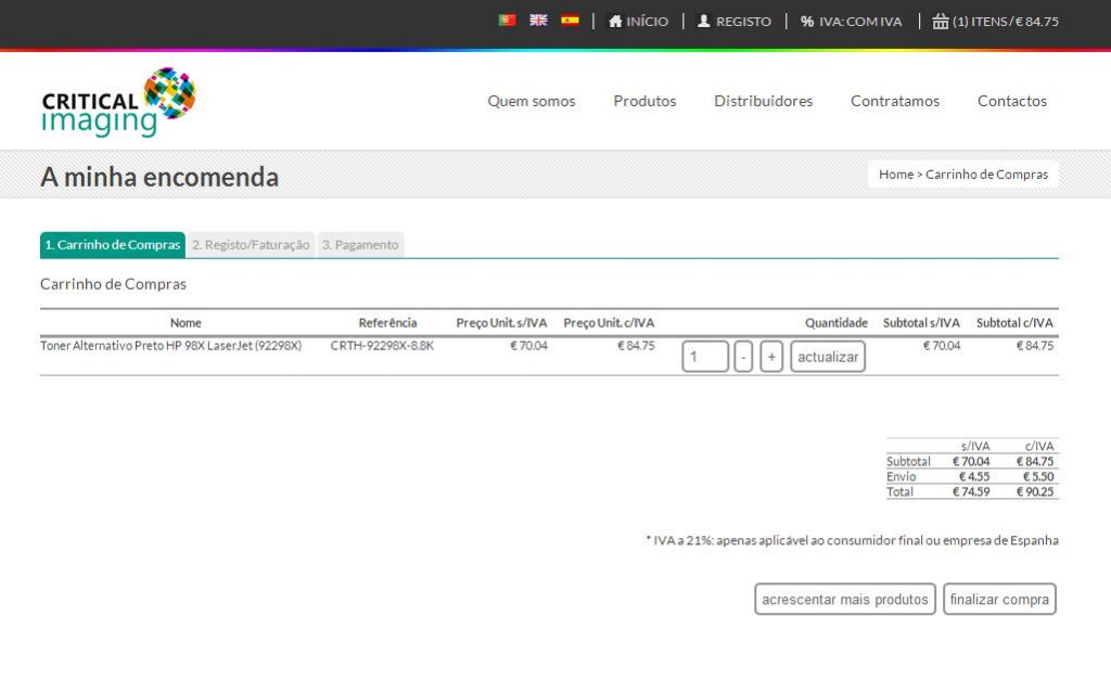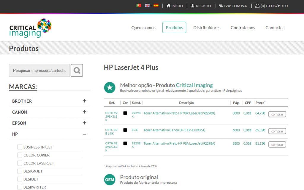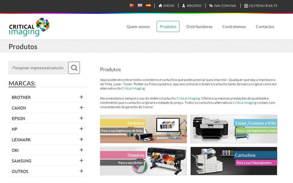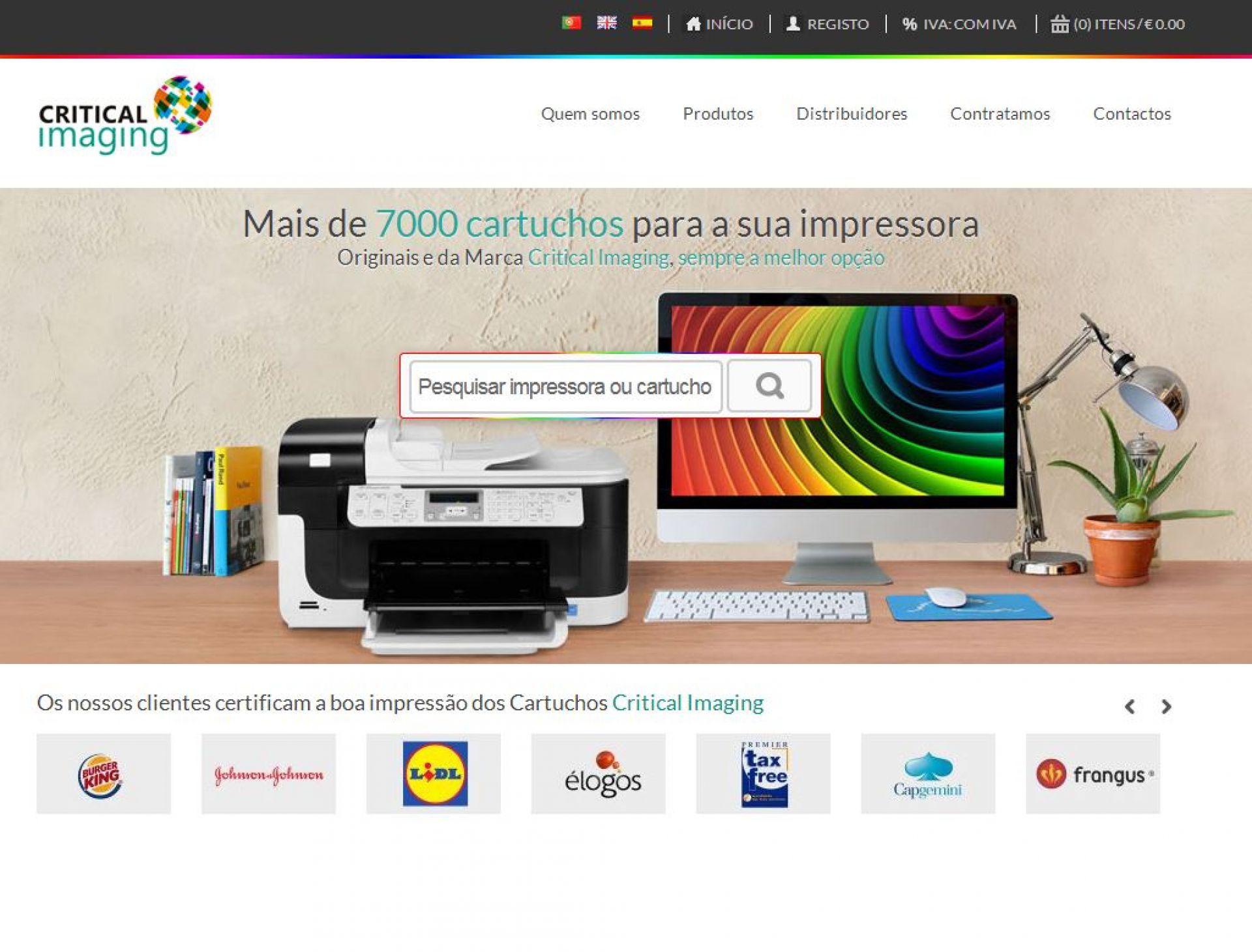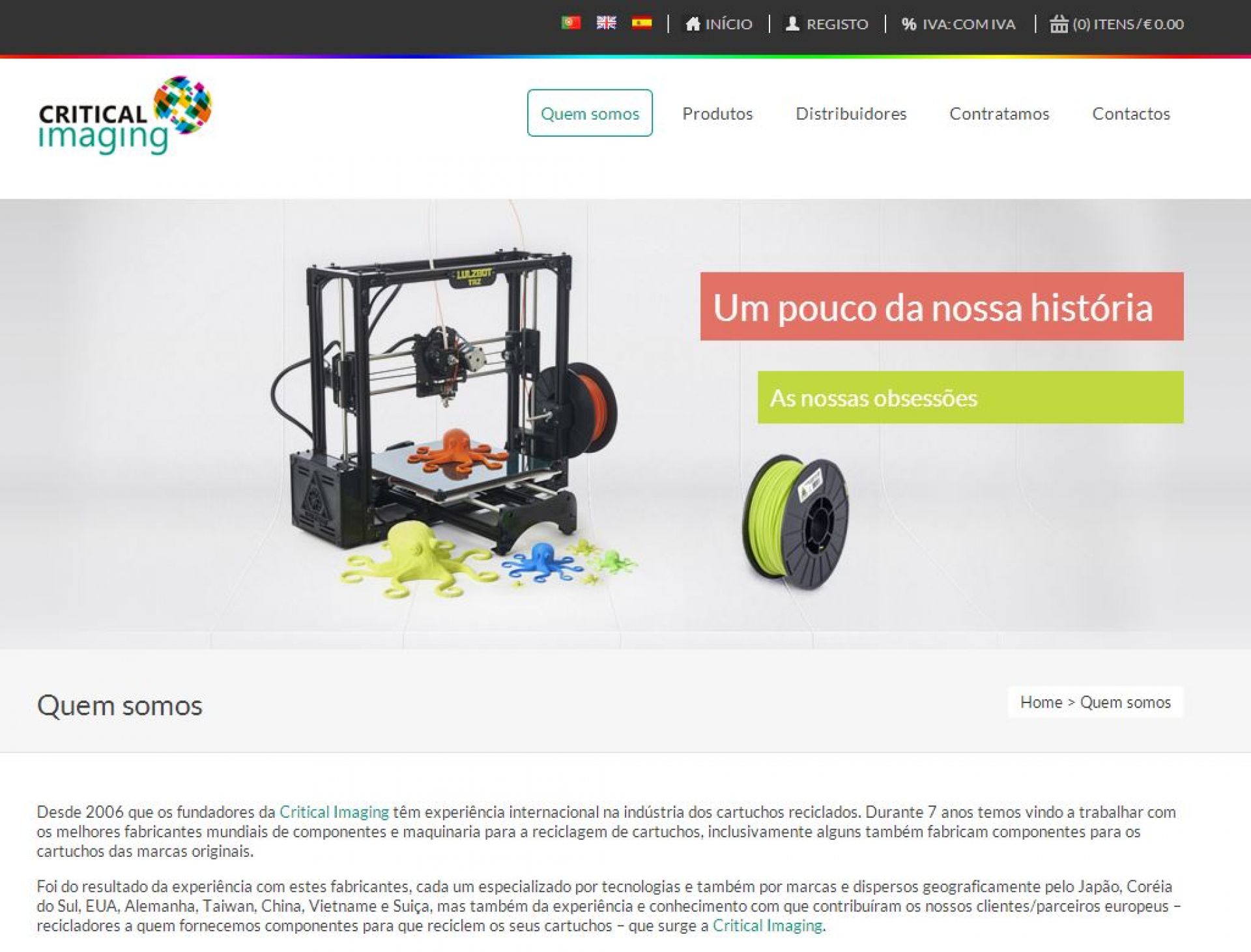 Desenvolvimento do website para a empresa espanhola Critical Imaging. Desde 2006 que os fundadores da Critical Imaging têm experiência internacional na indústria dos cartuchos reciclados. Durante 7 anos temos vindo a trabalhar com os melhores fabricantes mundiais de componentes e maquinaria para a reciclagem de cartuchos, inclusivamente alguns também fabricam componentes para os cartuchos das marcas originais.