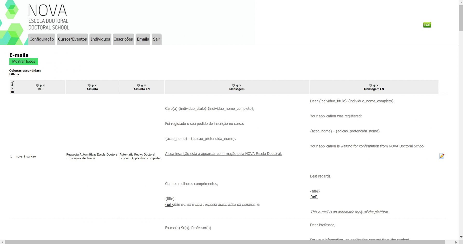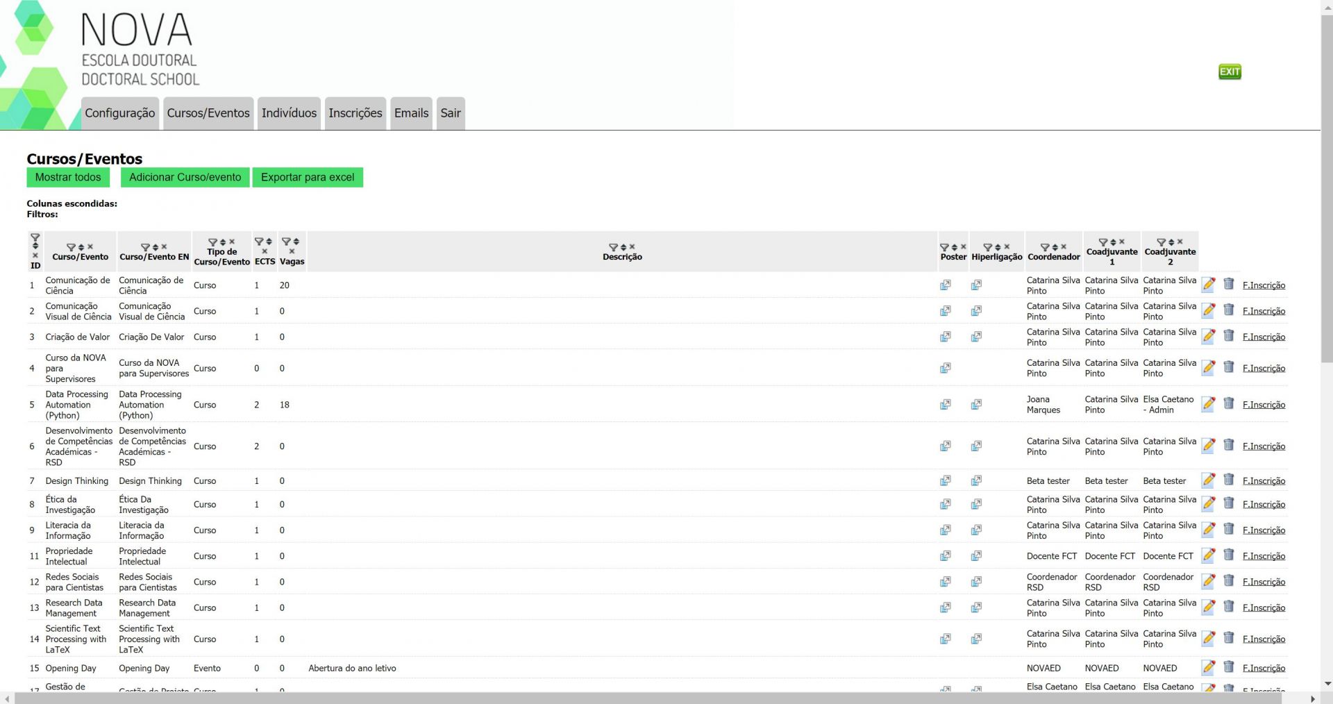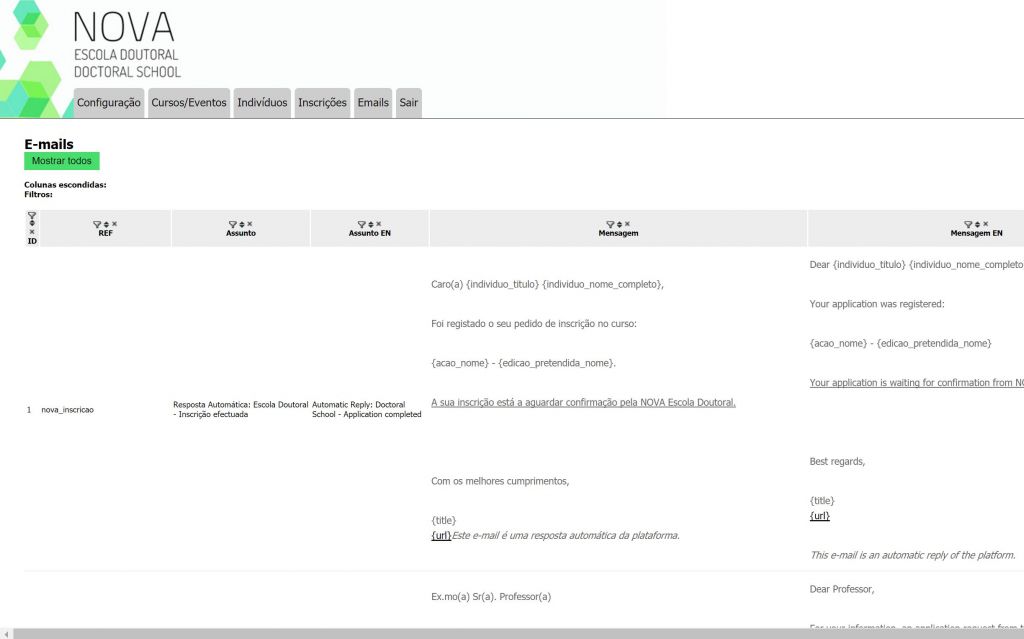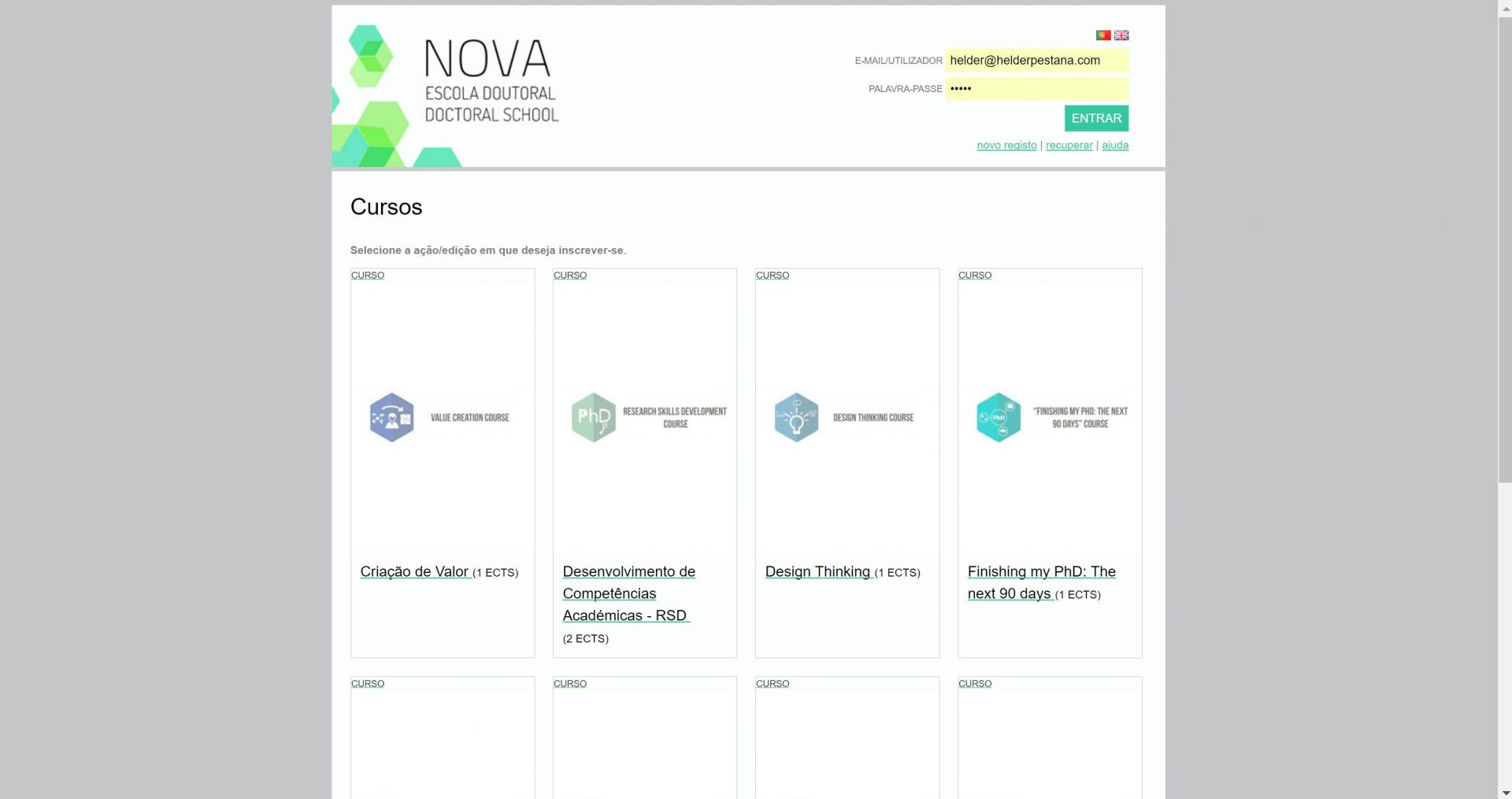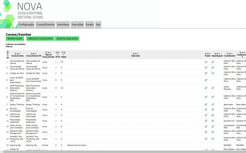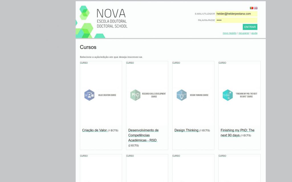 A NOVA Escola Doutoral tem como público-alvo os estudantes de doutoramento da Universidade Nova de Lisboa e seus supervisores. Consiste num sistema automático de inscrições e gestão de inscrições.
