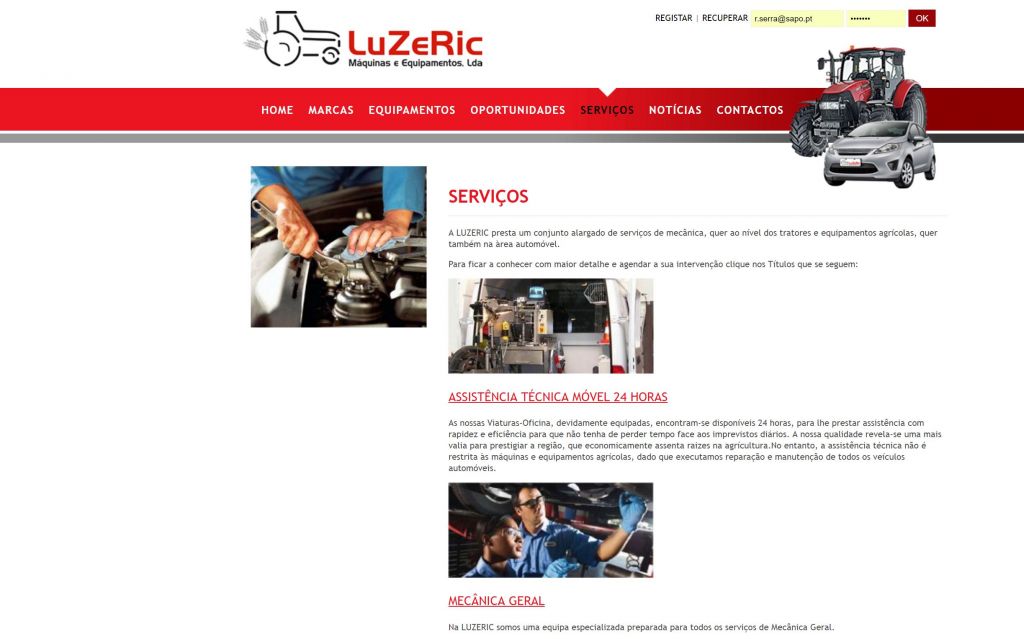 A Luzeric é uma empresa vocacionada para a venda, assistência e reparação de máquinas e equipamentos agrícolas. Paralelamente, prestamos também serviços de reparação e manutenção a veículos automóveis.