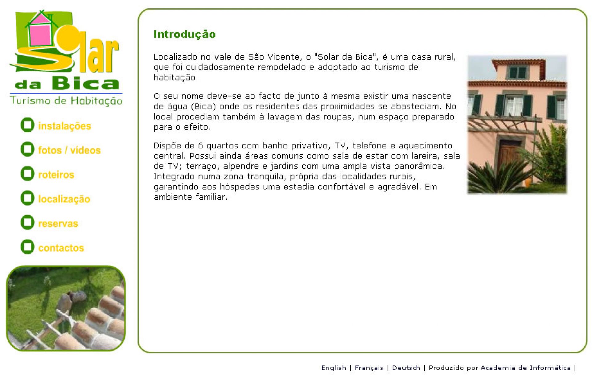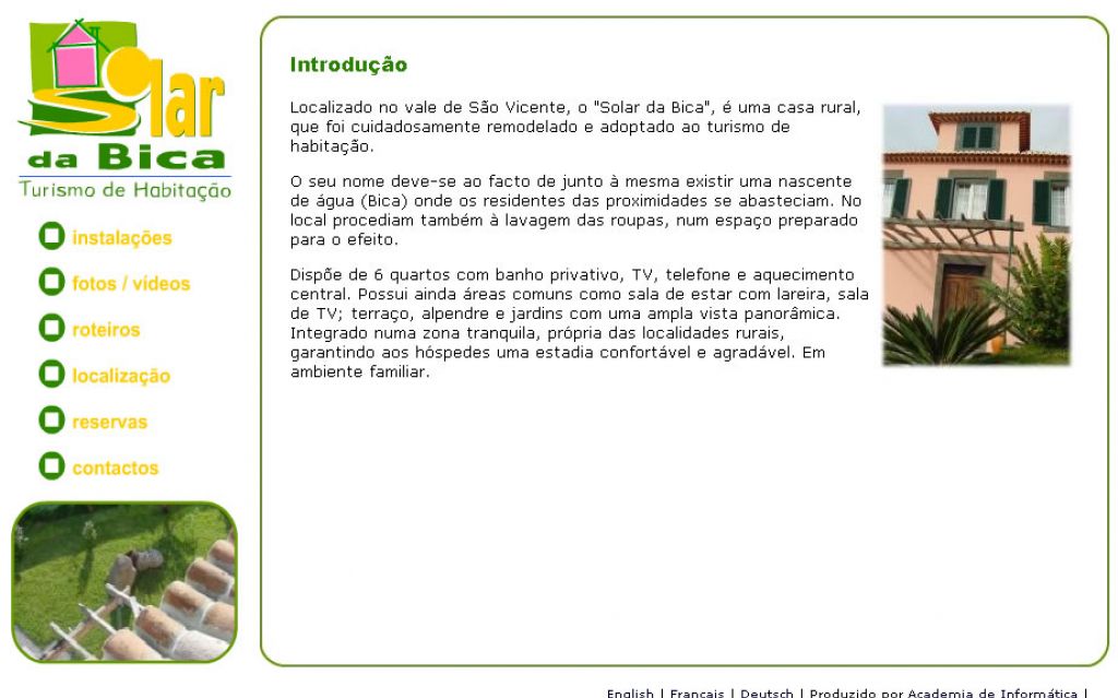 Site da unidade de turismo rural, localizada em São Vicente, Madeira.